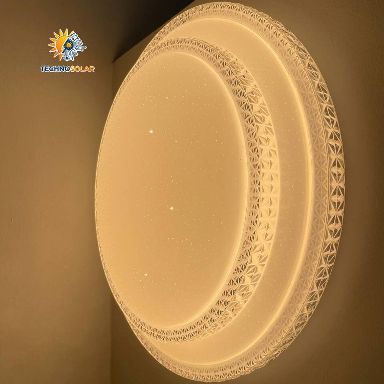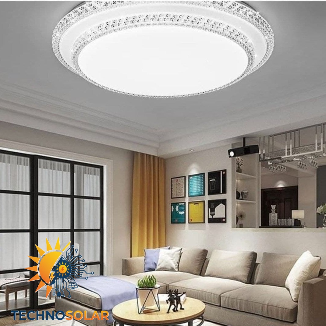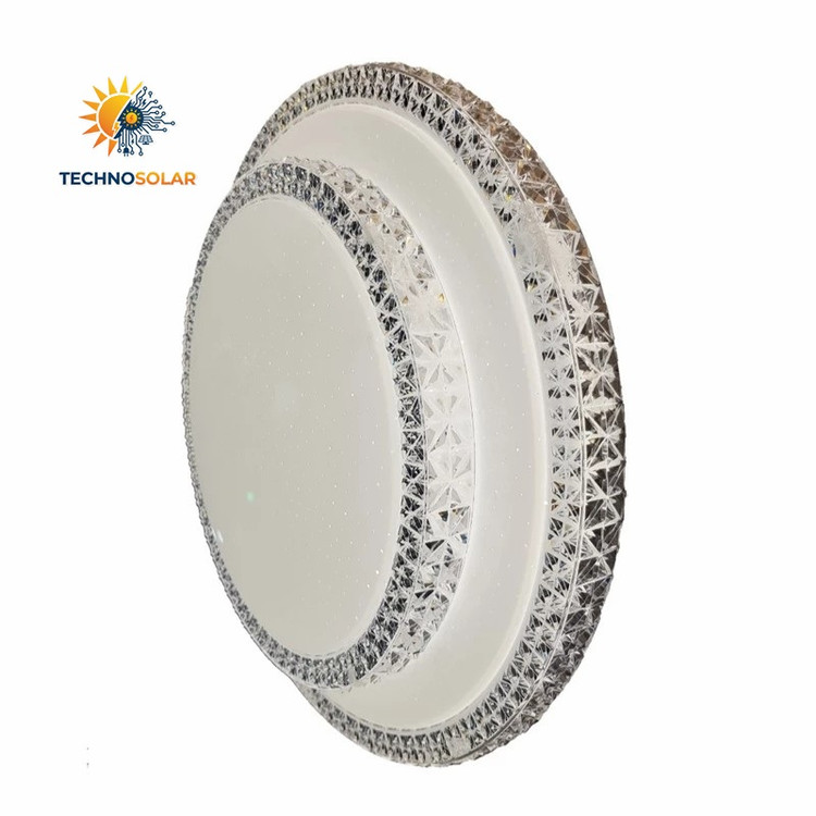لوستر سقفی گرد طرح دو طبقه با دور کریستالی تولید شرکت مودی یکی از زیباترین طرحهای چراغ سقفی بازار میباشد. این چراغها به صورت ۳ حالته (رنگ یخی ، آفتابی ، مهتابی) بوده که ابتدا رنگ سفید یا مهتابی آن روشن میشود و با خاموش و روشن کردن موجب تغییر رنگ به زرد یا همان آفتابی و با خاموش و روشن کردن مجدد رنگ زیبای نچرال یا طبیعی جلوه خواهد کرد.