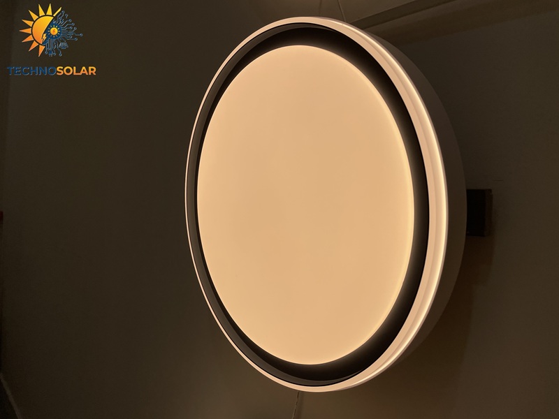 مصرف برق این چراغ سقفی درحالت تک رنگ سفید یا زرد ۷۰ درصد و در حالت نور ترکیبی ۳۰ درصد از یک عدد لامپ رشته ای کمتر میباشد همچنین قابل ذکر است که نور دهی آن بیش از ۳ برابر نور دهی یک لامپ رشته ای حبابی میباشد.